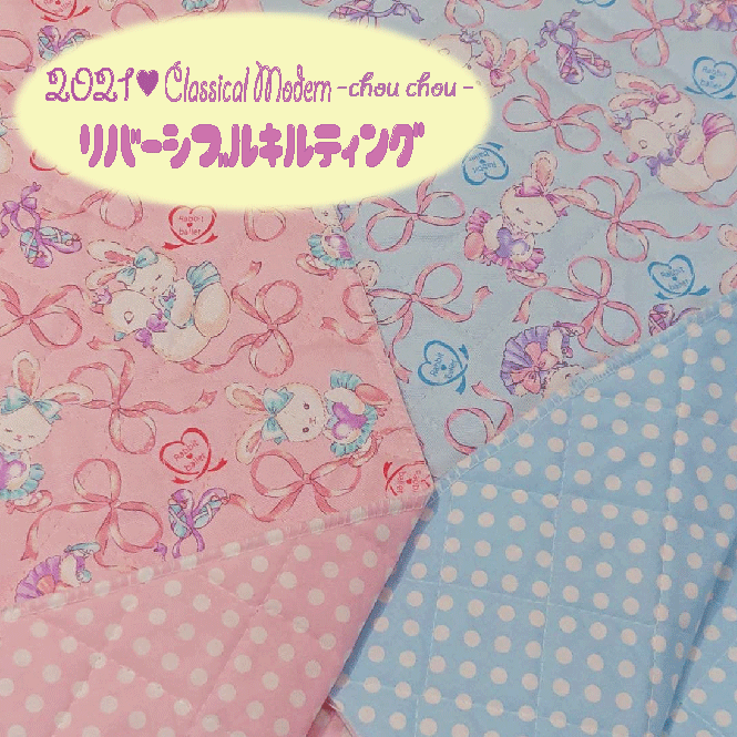 大人気クラシカルモダンシリーズからリバーシブルキルティング生地が登場! バレリーナを夢見るうさぎさんがとってもキュート♡ リボンやハートなど甘めなデザインになっています♪