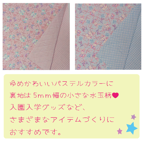 入園入学グッズのレッスンバッグやシューズケースにオススメ! カラーは2色。