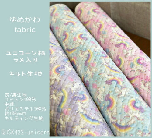 キルティング生地≪ゆめかわfabric≫『ユニコーン柄ラメ入り』のキルト生地/女の子/入園入学/レッスンバッグ/シューズバッグ/巾着袋/ユメカワ/虹/星/ハート/N21