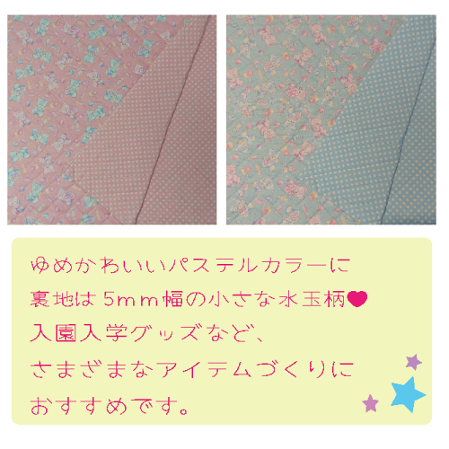 入園入学グッズのレッスンバッグやシューズケースにオススメ! カラーは2色。